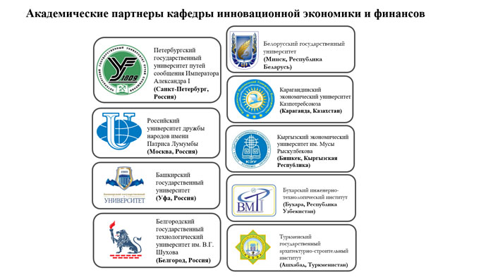 Сотрудничество с индустриальными и академическими партнерами является важным направлением деятельности кафедры. Взаимодействие с представителями бизнеса, финансового сектора и ведущих образовательных организаций позволяет обеспечивать практико-ориентированную подготовку студентов, развивать научные исследования и внедрять инновационные образовательные технологии. Партнерские связи кафедры способствуют обмену опытом, реализации совместных проектов и формированию компетенций, востребованных в современной экономике. Профессорско-преподавательский состав