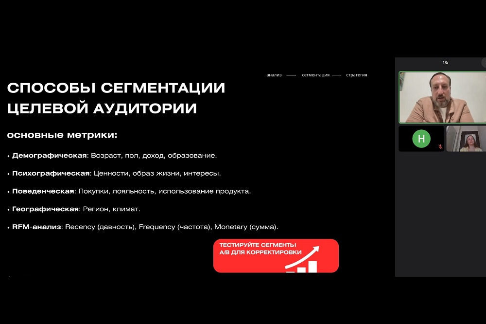 Алексей Николаевич рассказал о своём опыте работы над запуском разнообразных проектов. Участники образовательного события узнали, как проводить успешный анализ рынка и сегментацию целевой аудитории, которые позволяют бизнесу концентрироваться на наиболее прибыльных сегментах, разрабатывать релевантные предложения и эффективно использовать маркетинговые ресурсы для достижения высоких результатов.