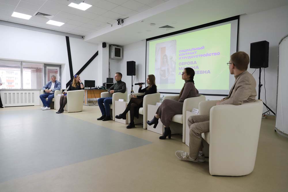 Студенты, которые уже заключили соцконтракты и реализовали свои идеи, поделились впечатлениями, рассказали о своих проектах и процессе трудоустройства.