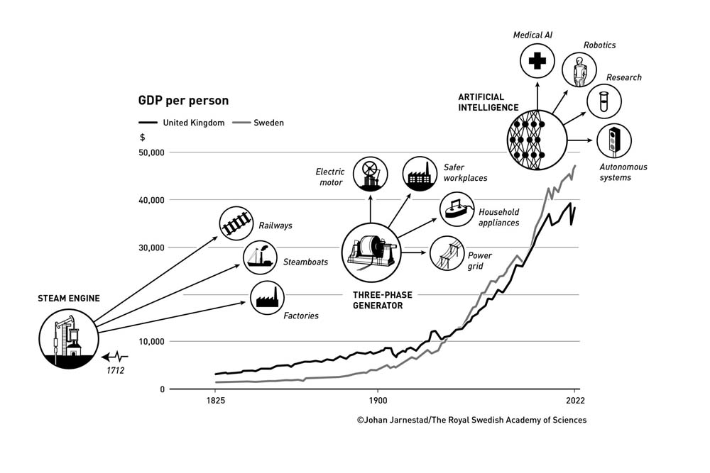 В пресс-релизе Королевской Шведской академии наук указано, что награду Шведского государственного банка памяти Альфреда Нобеля за достижения в области экономических наук в 2025 году присудили трём лауреатам. В неравной степени премию разделили между тремя авторами: половину получил Джоэль Мокир (представляет Западноевропейский университет в Эванстоне штата Иллинойс, США и Школу экономики им. Эйтана Бергласа Тель-Авивского университета, Израиль), а вторую половину разделили Филипп Агьон (работает в парижском учебном и научно-исследовательском учреждении Коллеж де Франс и бизнес-школе INSEAD в Фонтенбло, Франция, и Лондонской школе экономики и политических наук) и Питер Ховитт (преподаёт экономику и общественные науки в Брауновском университете в Провиденсе штата Род-Айленд, США).