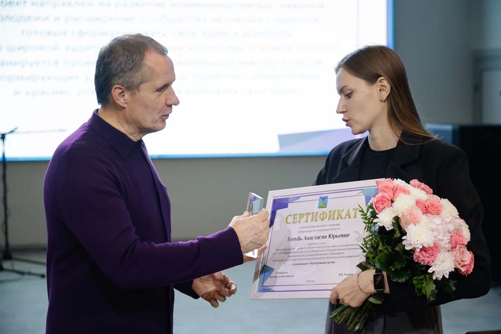 Вручая стипендиатам заслуженные награды, губернатор Белгородской области Вячеслав Гладков поблагодарил их за активную жизненную позицию.