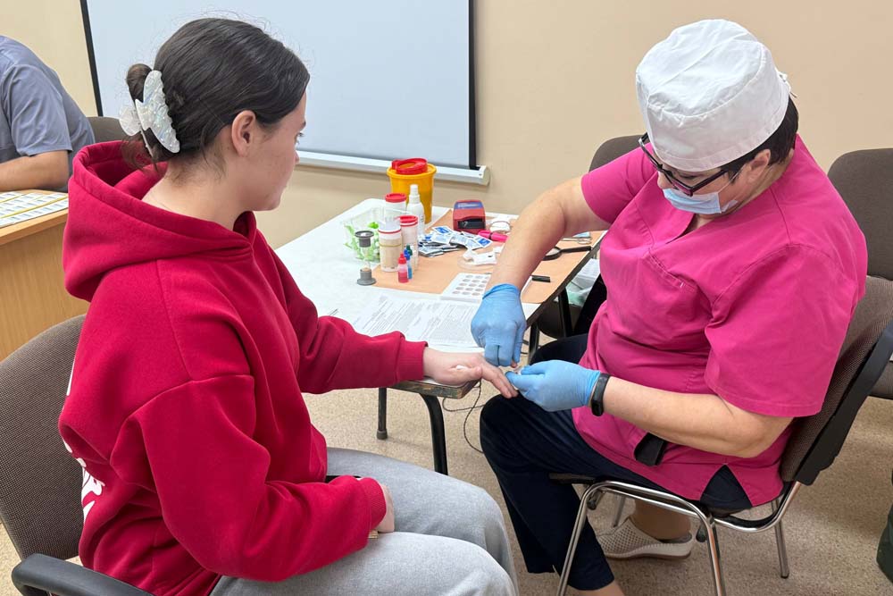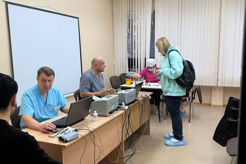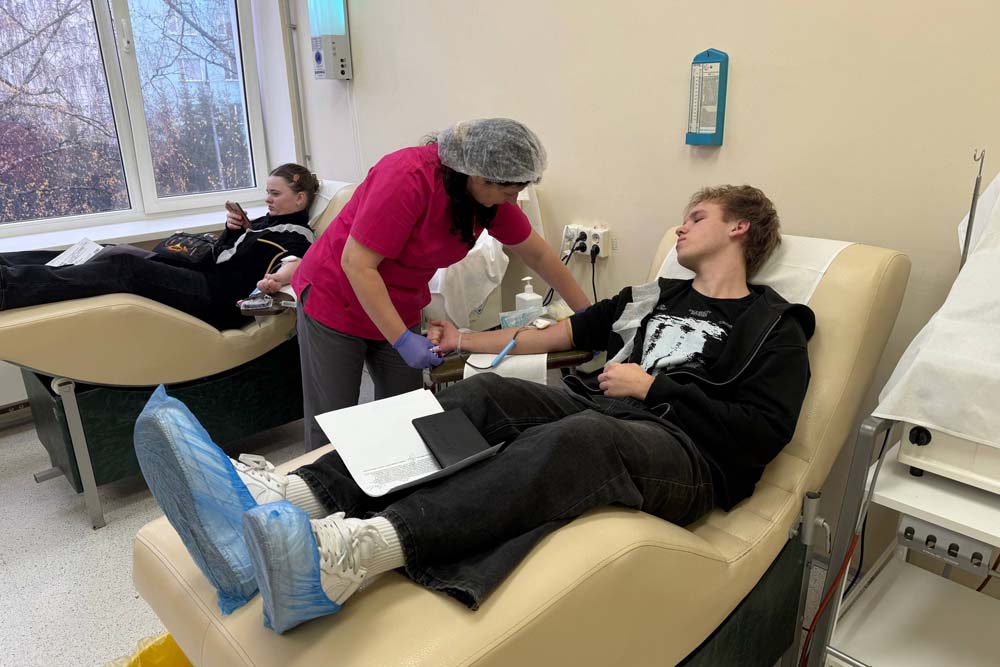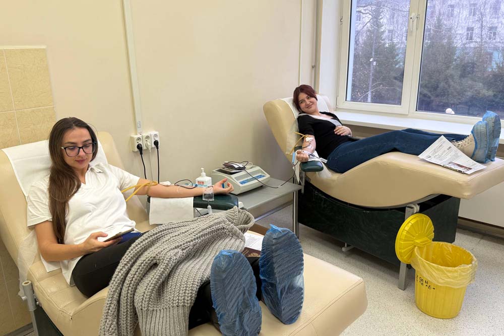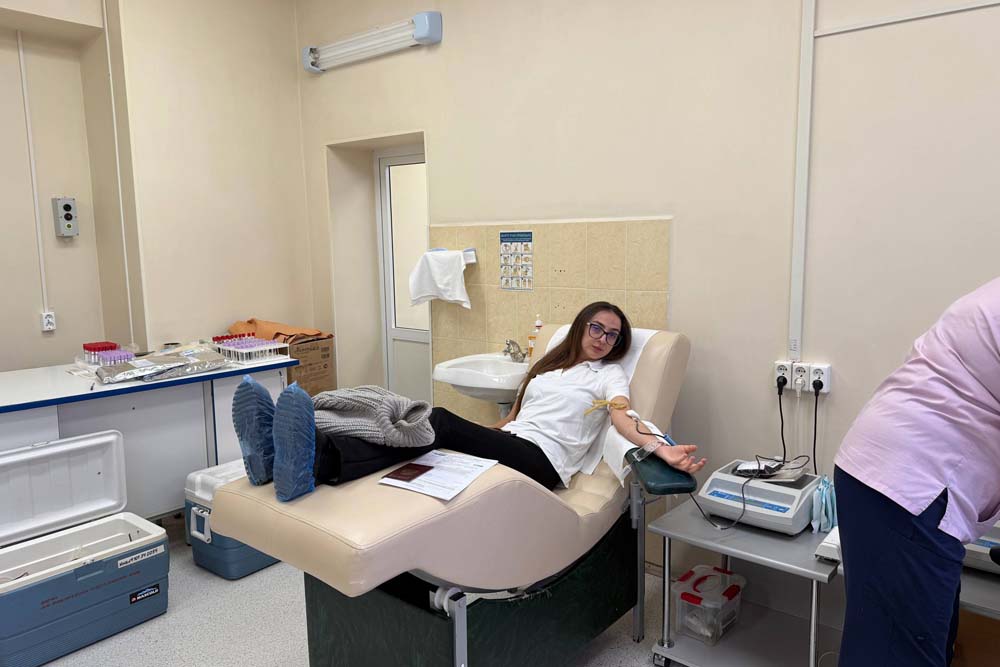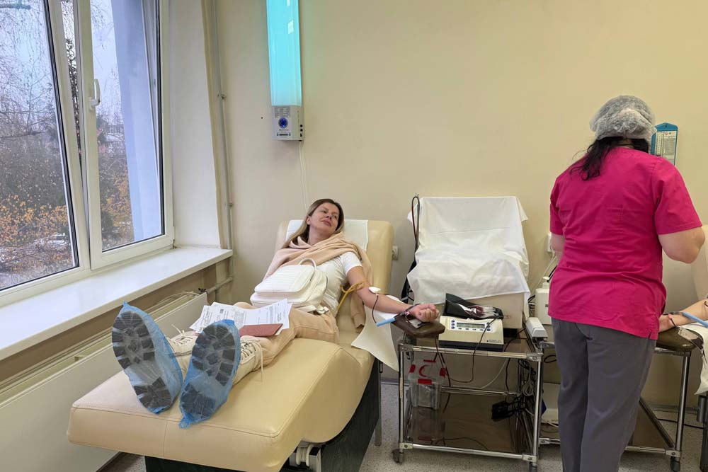 Перед донацией все участники прошли обязательное медицинское обследование, включающее анализ крови и осмотр терапевтом, чтобы убедиться в отсутствии противопоказаний к сдаче крови. После успешного прохождения процедуры доноры смогли восстановить силы в уютном буфете, где для них были подготовлены горячий сладкий чай и выпечка.