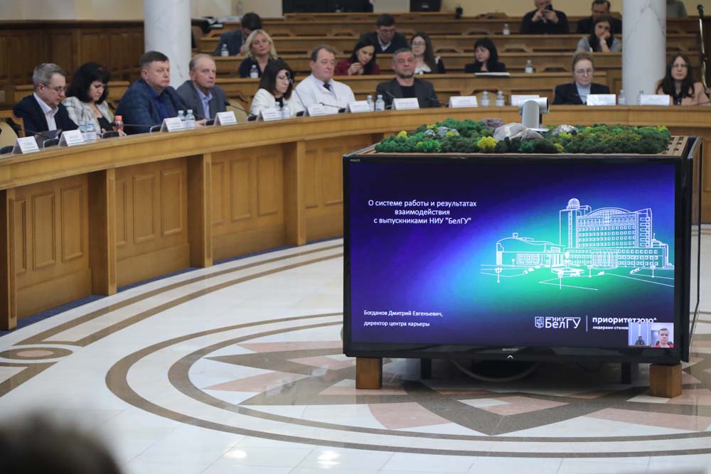 Директор Центра карьеры НИУ «БелГУ» Дмитрий Богданов познакомил членов учёного совета с тем, как в университете строится работа с выпускниками. По словам докладчика, в 2025 году в результате развития цифровой карьерной среды, расширения партнёрской сети и начала трансформации Ассоциации выпускников НИУ «БелГУ» удалось сформировать прочный фундамент для перехода на новый уровень взаимодействия с выпускниками университета.