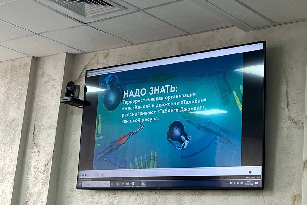 Студенты просмотрели видеоролик о запрещённых экстремистских организациях в России, узнали о наказании за вступление в данные организации.