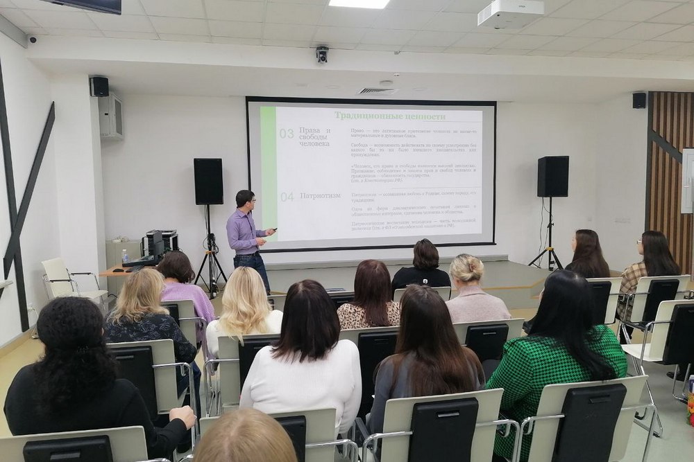 В Центре проектных компетенций НИУ «БелГУ» прошла интерактивная лекция «Традиционные российские духовно-нравственные ценности» для ответственных за реализацию молодёжной и социальной политики в институтах и колледжах. Мероприятие посвятили современным технологиям сохранения и укрепления традиционных ценностей в молодёжной среде.