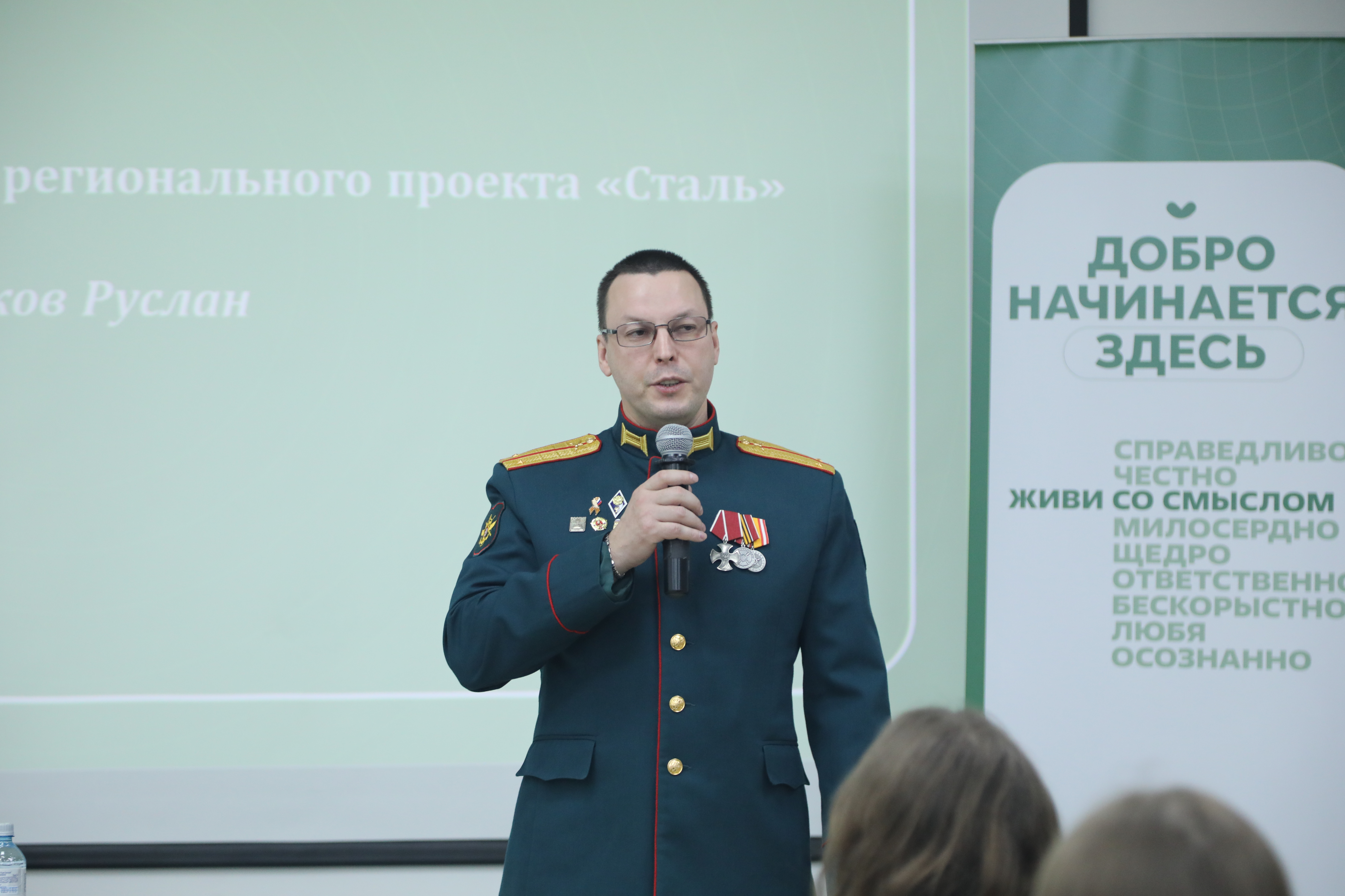 Студентов разделили на команды, к каждой из которых был прикреплён наставник. На протяжении двух дней участники проходили мастер-классы, для них приготовили встречи с авторами востребованных проектов. Студенты пообщались с участниками СВО, а также с блогером, автором военно-исторического канала «Зелёная книга» «Страна Героев» Николаем Ярошем и руководителем клуба «Крепость» Михаилом Киктенко. Был и приятный бонус от организаторов – ДоброКарта, которая фиксировала активность участников на мероприятиях Школы. Наиболее активные получили сертификат на сувенирную продукцию.