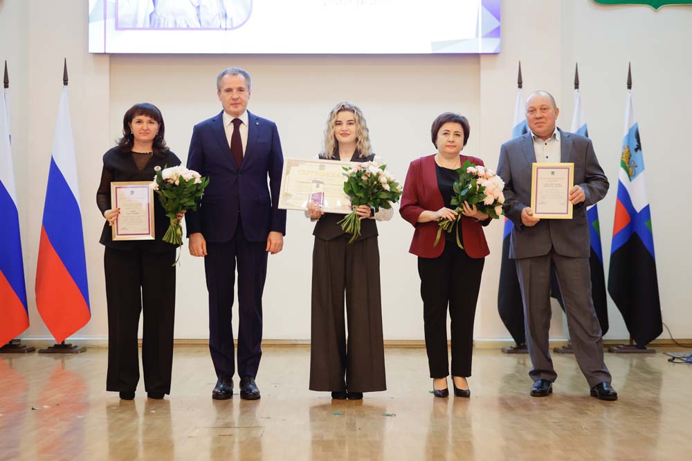 В Белгороде состоялись церемонии награждения студентов региональных вузов и СПО, выигравших конкурс на соискание стипендии губернатора в номинациях «Образование и педагогические науки», «Наука», «Социально значимая и общественная деятельность», «Спорт», «Творчество» и «За достижения в профессиональной деятельности».