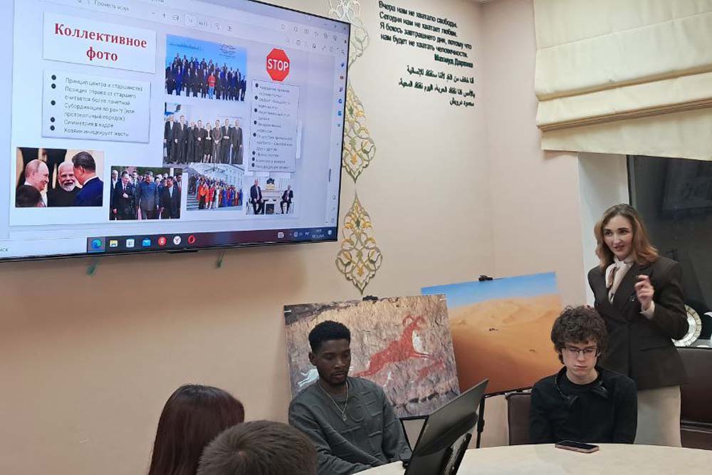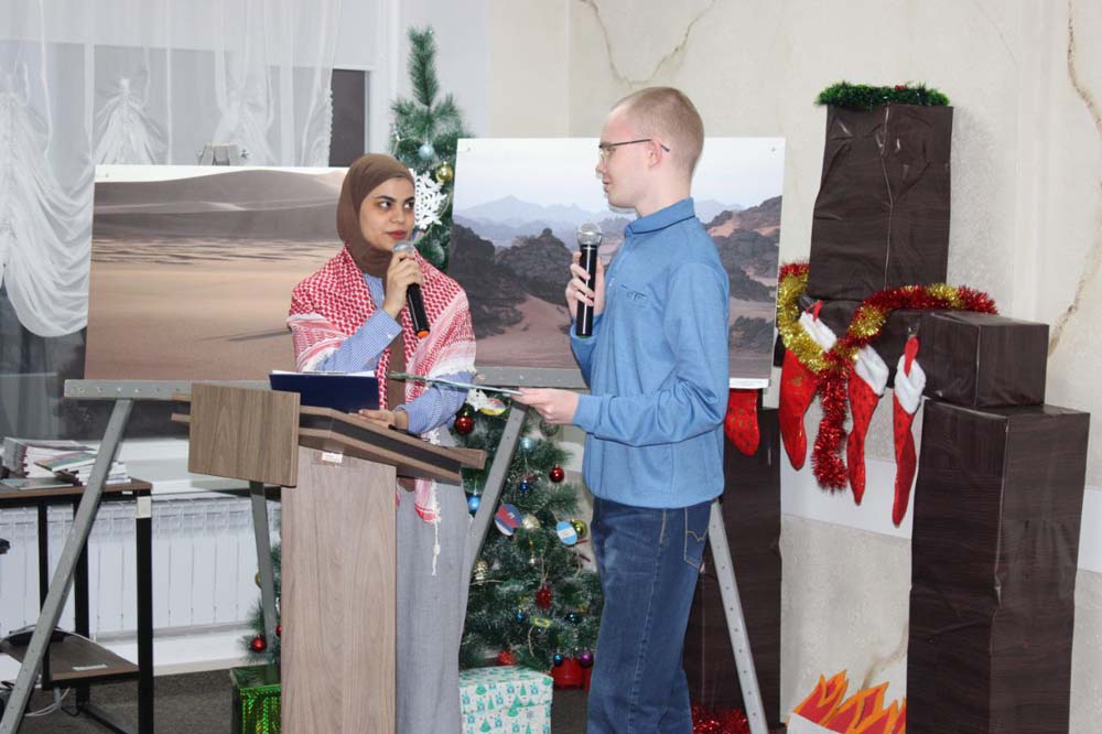 Студенты из стран арабского мира познакомили с историческими, архитектурными, природными достопримечательностями родных стран, исполнили литературные и музыкальные произведения на арабском языке. Гости встречи смогли проверить свои знания в ходе увлекательной викторины и получили призы от автора книг о Сахаре Николая Сологубовского и Центра арабского языка и культуры имени Махмуда Дарвиша.