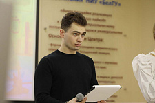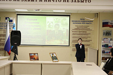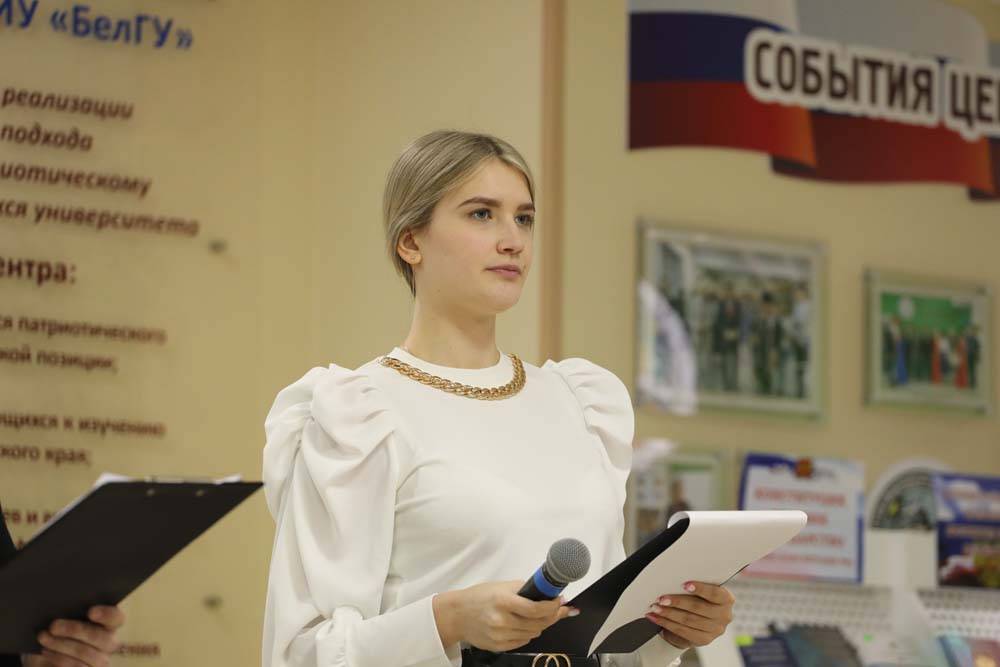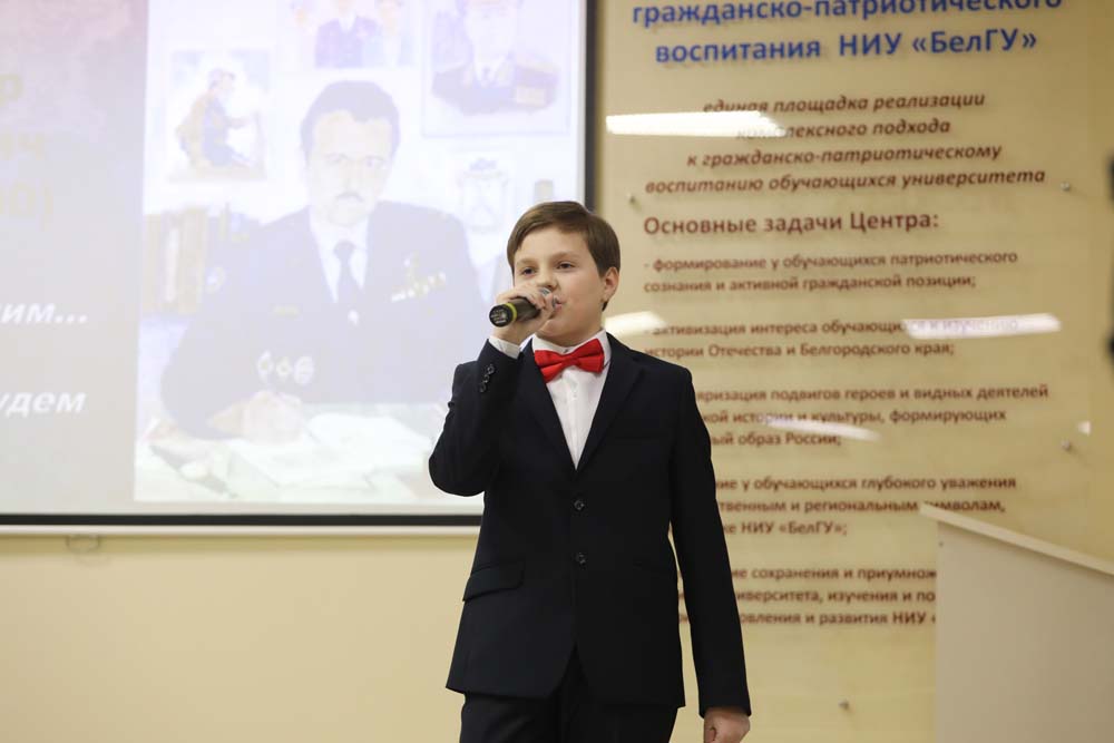 Ведущие вечера – специалист Центра молодёжных инициатив НИУ «БелГУ» Игорь Пархомов и председатель студактива Центра гражданско-патриотического воспитания обучающихся Елизавета Рыбочкина рассказали студентам о подвиге Владимира Васильевича во время первой Чеченской войны, за который он был удостоен звания Героя Российской Федерации и «Золотой Звезды».