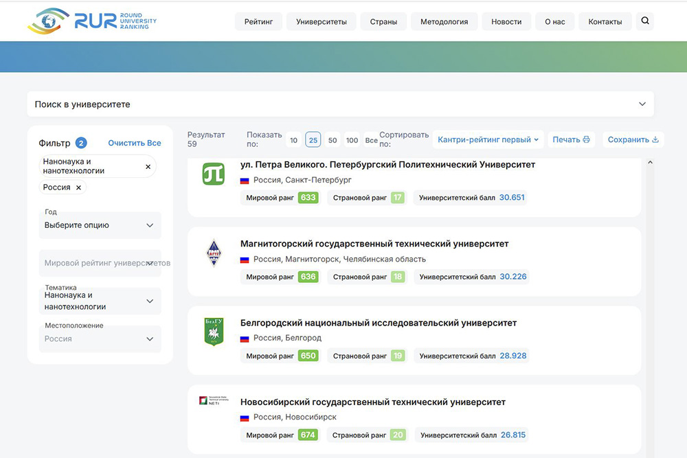 – по Естественным наукам – 614 место из 920 вузов мира и 33 место из 79 вузов РФ;