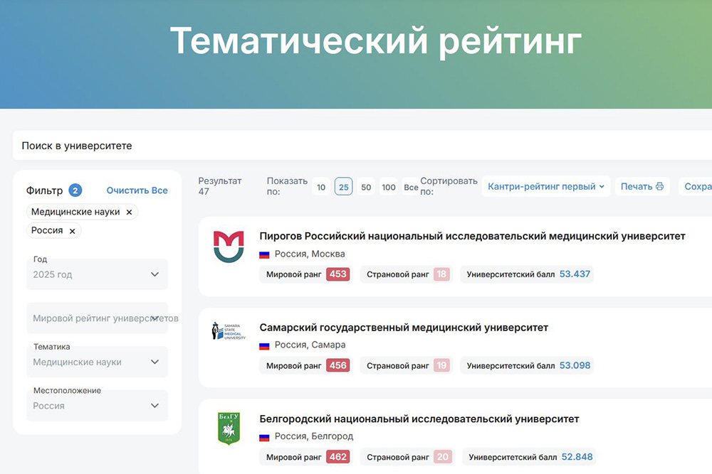 Как прокомментировала специалист отдела мониторинга и аналитики реализации программ развития НИУ «БелГУ» Олеся Серкина, благодаря переходу рейтинга на новый сайт, стали доступны результаты по 26 отдельным предметам, из которых НИУ «БелГУ» в 2025 году вошёл в 24 рейтинга.
