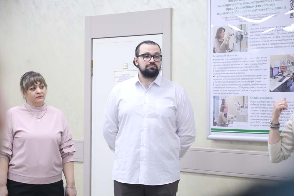 Авторы научных разработок рассказали о результатах своего труда. Под руководством старшего научного сотрудника лаборатории механических свойств наноструктурных и жаропрочных материалов Александры Федосеевой разработан новый подход к повышению жаропрочности высокохромистых сталей, предназначенных для лопаток паровых турбин тепловых электростанций. Вместе с ней о работе рассказал аспирант кафедры материаловедения и нанотехнологий, победитель конкурса на соискание стипендии Президента Российской Федерации по приоритетным направлениям научно-технологического развития РФ Иван Бражников.