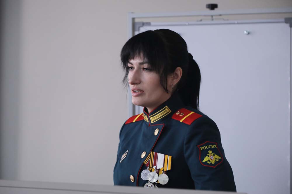 Обучающиеся задавали гостье вопросы о том, как поступить на военную службу, о людях, которыми она вдохновляется, различных аспектах её профессиональной деятельности.