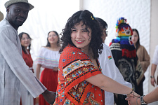 Студенты-иностранцы рассказали, что их больше всего привлекает в России и её людях, поделились своим опытом общения с представителями разных народов Российской Федерации. Более 30 студентов Алжира, Анголы, Боливии, Бразилии, Буркина-Фасо, Египта, Индонезии, Йемена, Марокко, Намибии, Нигерии, Туркменистана, Узбекистана, Чада, Эквадора взялись за руки, образовав круг как символ единства и взаимопонимания, исполнили микс из элементов танцев разных народов, перемежая традиционными для русского хоровода движениями.