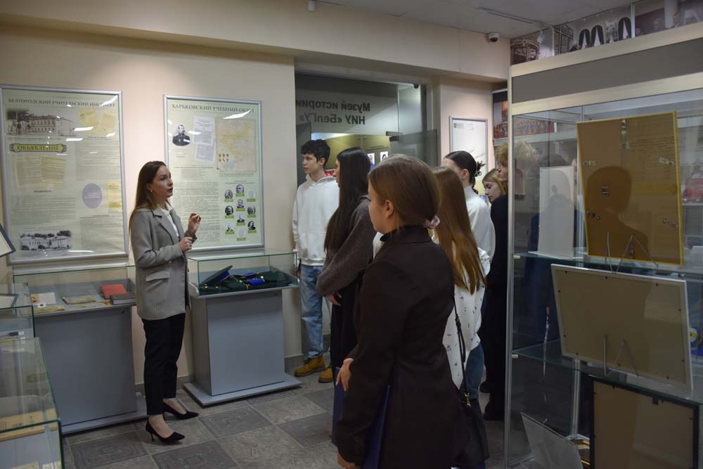 Визит в НИУ «БелГУ» ученики Тавровской СОШ «Формула Успеха» начали с экскурсии в Центр истории НИУ «БелГУ». Сотрудники Центра рассказали школьникам об истории становления университета, его современной структуре, познакомили с выставками «Символы и символика НИУ «БелГУ» и «Достижения НИУ «БелГУ».