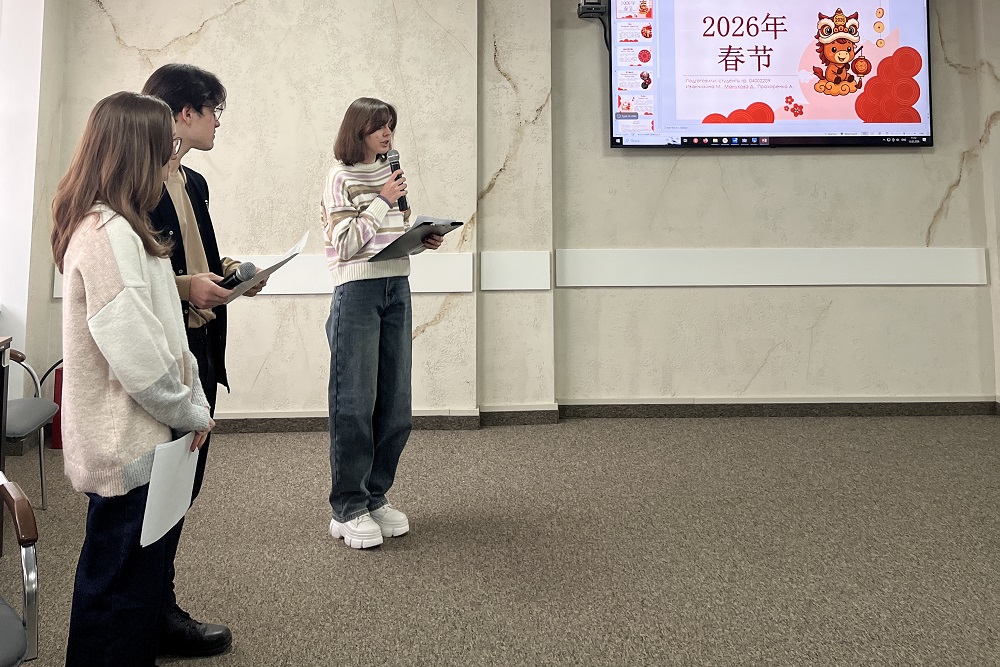 Директор института межкультурной коммуникации и международных отношений Ольга Прохорова поздравила присутствующих с наступающим праздником, а представитель Университета Дэчжоу Сунь Синюань подчеркнул важность дружеских связей между двумя вузами.