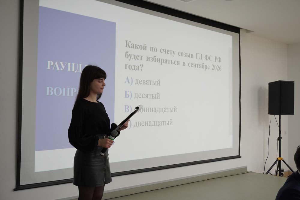 Интеллектуальное состязание организовал Клуб молодого избирателя «Перспектива» юридического института совместно с департаментом молодёжной политики и воспитательной деятельности. Активисты клуба подготовили для участников непростые, но увлекательные вопросы. Основной акцент в викторине был сделан на актуальную политическую повестку региона и страны: вопросы касались процедуры и истории выборов Губернатора Белгородской области, а также грядущих выборов депутатов Государственной Думы Федерального Собрания Российской Федерации XI созыва, которые состоятся в сентябре 2026 года.