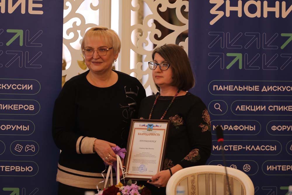 Завершающим пунктом повестки мероприятия стало награждение: Благодарственное письмо Главного федерального инспектора по Белгородской области получил лектор РО «Знание», старший преподаватель кафедры международных отношений, зарубежного регионоведения и политологии НИУ «БелГУ» Роман Травин, Благодарность заместителя Губернатора – министра образования Белгородской области – менеджер филиала РО «Знание» в Белгородской области, магистрант ИОНиМК НИУ «БелГУ» Полина Мусаева.
