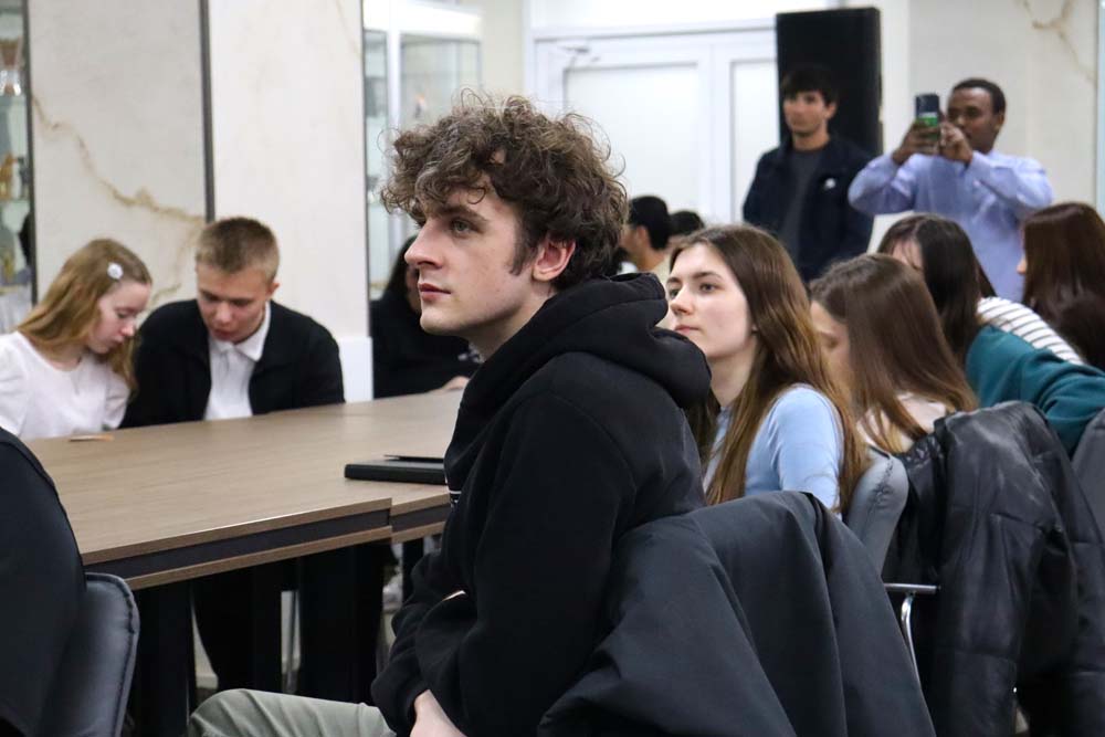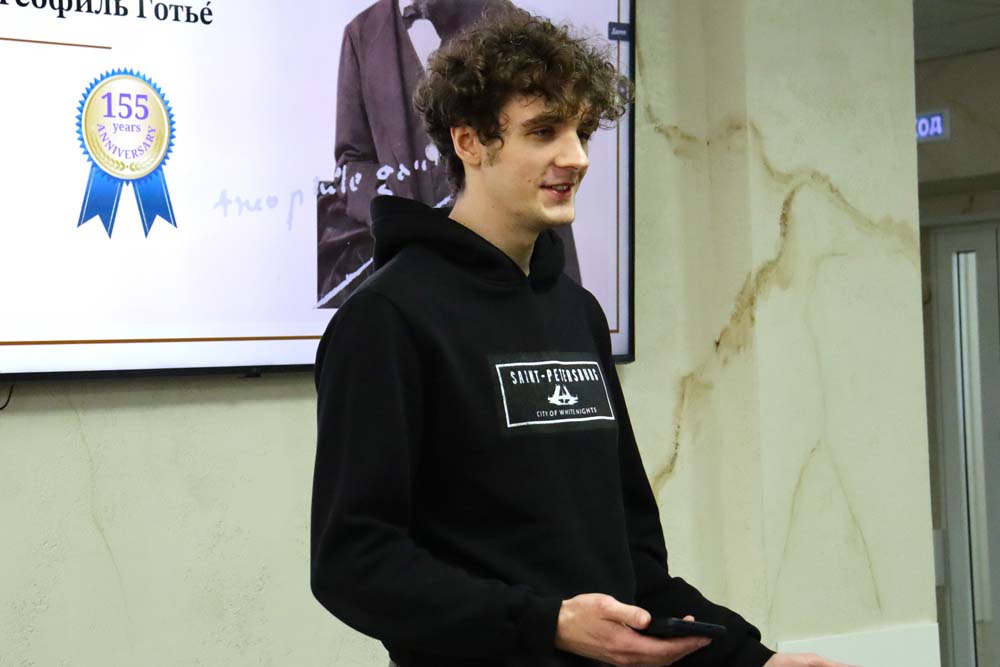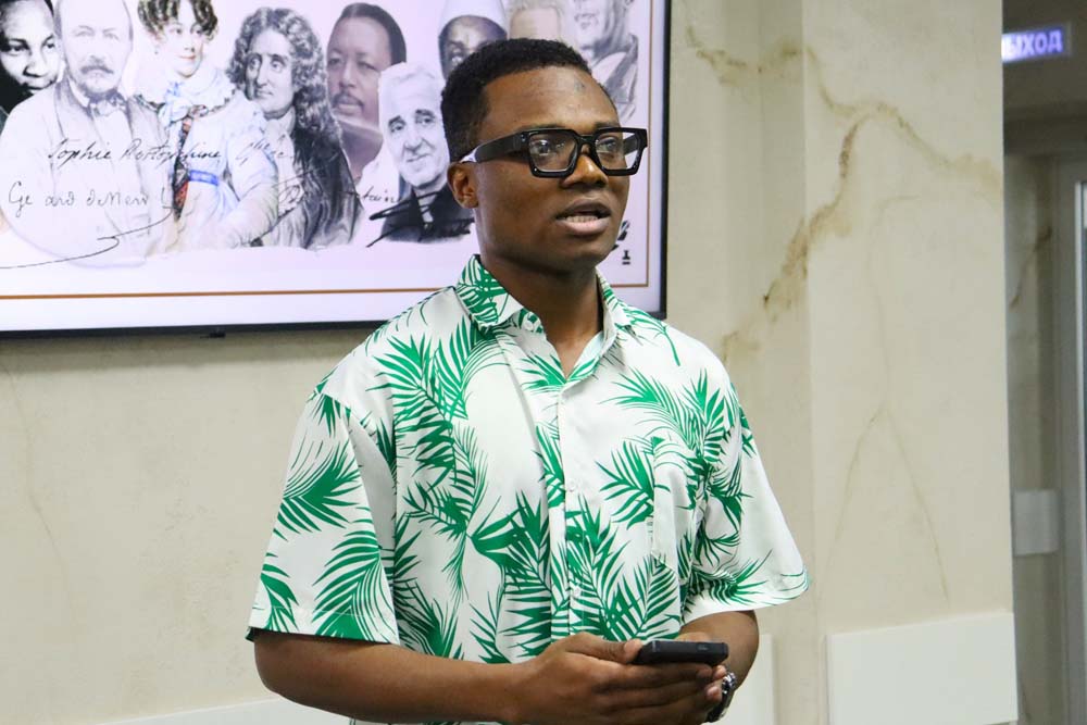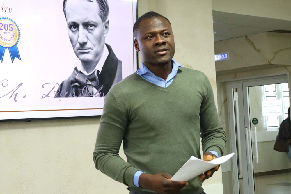 Ведущим вечера выступил стажёр международного информационного центра департамента международного сотрудничества, студент инстиутта межкультурной коммуникации и международных отношений Сану Ибрагим Ромуальд, который в завершении встречи, прочитав стихи собственного сочинения по-французски и представив их перевод на русский язык, пригласил всех желающих стать участниками Международного конкурса перевода студенческих поэтических текстов «Цветы под стеклом». Конкурс завершится чествованием участников и победителей во Всемирный день книги 23 апреля.
