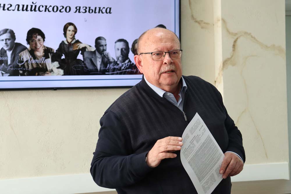 Участников встречи приветствовал заведующий кафедрой английской филологии и межкультурной коммуникации Института межкультурной коммуникации и международных отношений Владимир Пугач.