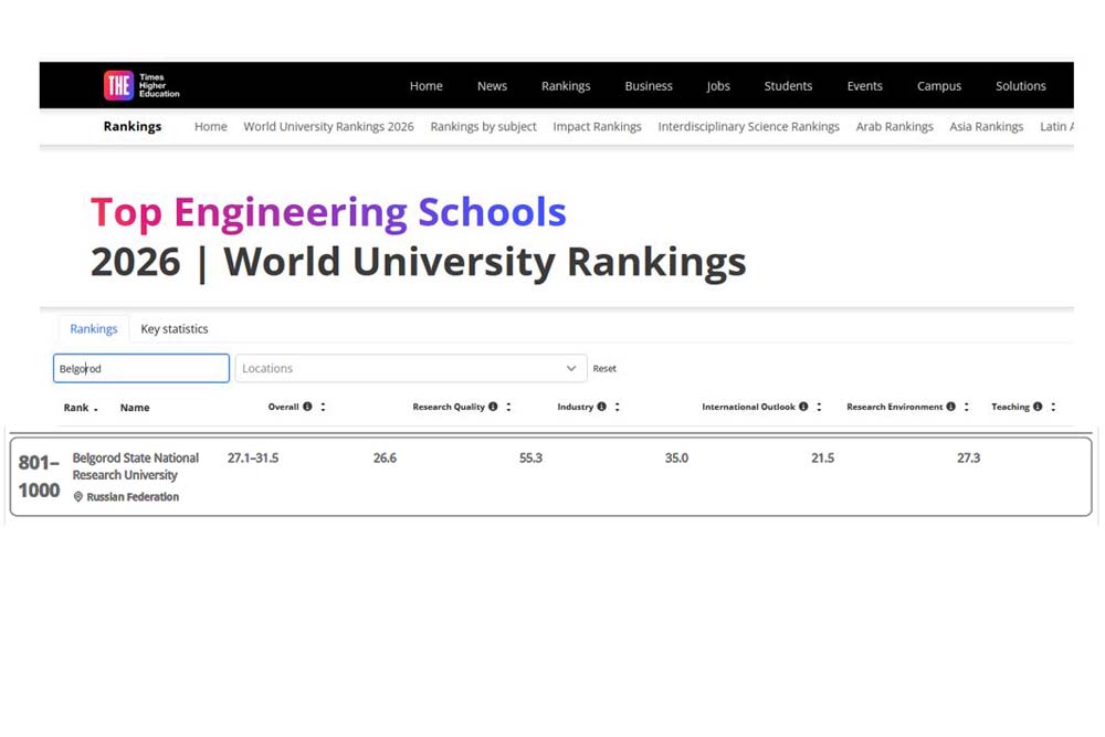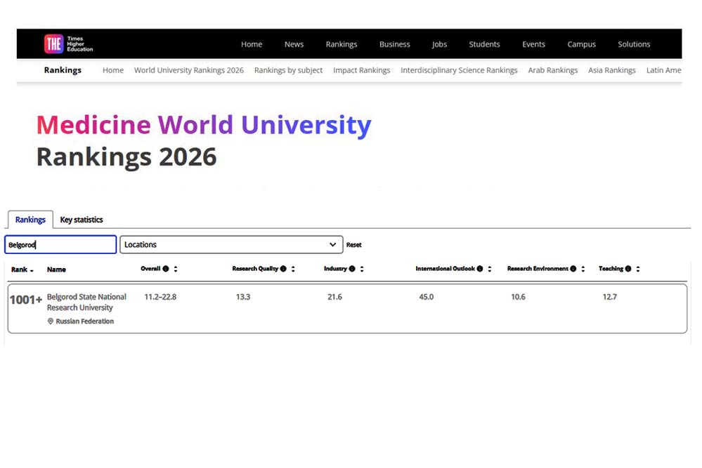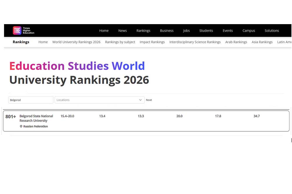 НИУ «БелГУ» наращивает присутствие в рейтингах международного агентства Times Higher Education